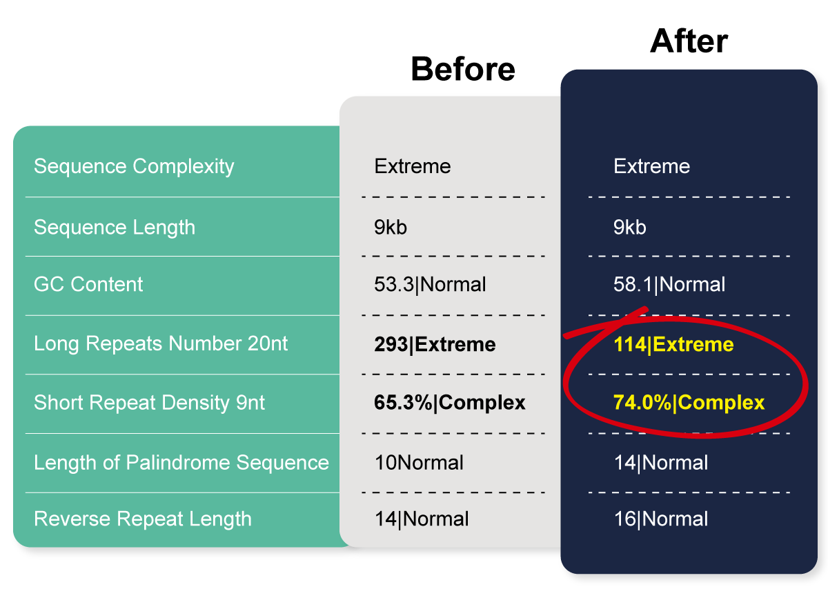 We optimized the sequence to reduce repeats and complexity without altering the protein.